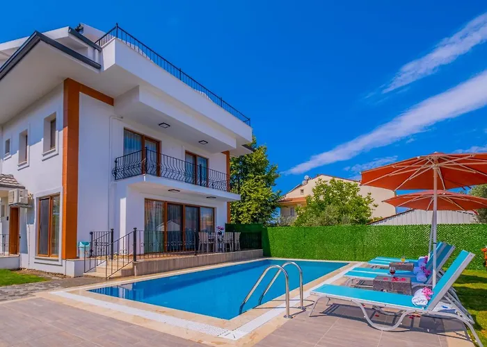 De 3-slaapkamer Infinity Myra Villa Fethiye ligt binnen 12 minuten wandelen van het strand Calis en beschikt over een zwembad op een terras voor een aangenaam verblijf.